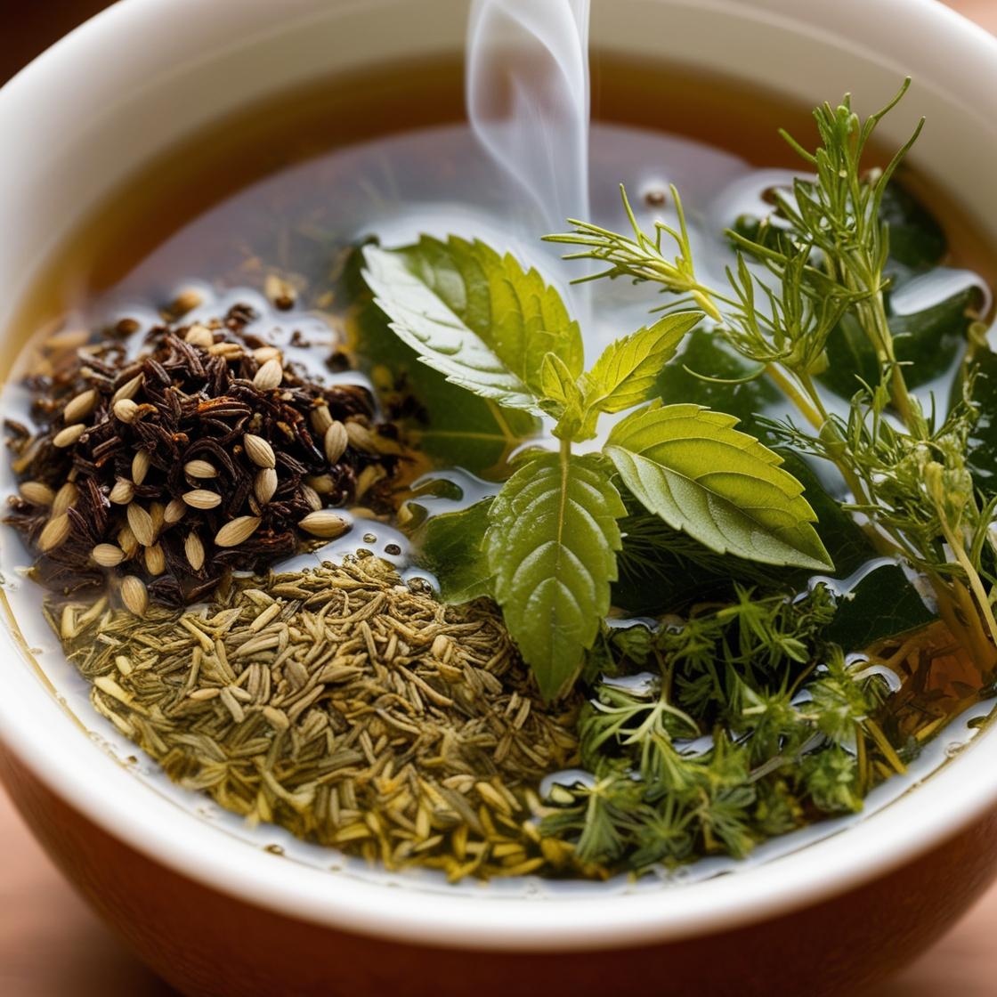 Honeybush, anijs, venkel, fenegriek, karwij, citroenmelisse, citroenverbena en lavendel thee